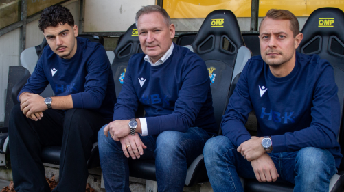 Den blå urtavlan speglar vår identitet, med klubbmärket vid kl. 12 och en subtil markering av vårt arv vid kl. 6. Den präglade bollen på tavlan är hämtad direkt från vårt klubbemblem och knyter designen till våra rötter och till den historia som burit Halmstads BK framåt.