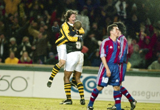 - Jag var i bra form och hade gjort en del mål på väg fram till kvartsfinalen. Jag har för mig att Ronaldo, den gamla Ronaldo alltså, ledde skytteligan med mig strax bakom. Och det var rätt fint att få göra 1-0 på Camp Nou efter en minut! Vi förlorade sen matchen med 3-1. I returen hemma gjorde jag också mål. Matchen slutade 1-1 och vi var utslagna. För mig personligen blev dubbelmötet en påminnelse om att det fanns en högre nivå inom fotbollen. Trots två bra matcher av oss och mig så var vi i praktiken chanslösa. Det var en intressant erfarenhet.