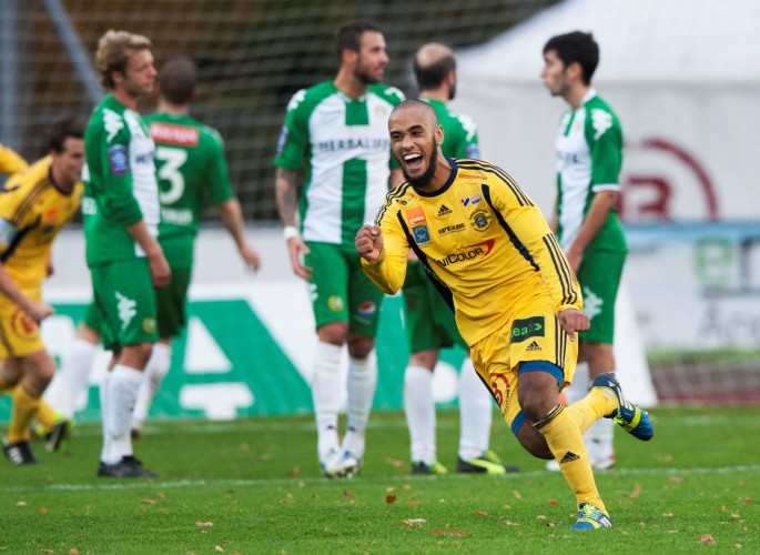 Lycka efter att ha gjort 3-2 mot Hammarby 2013 i Superettan.