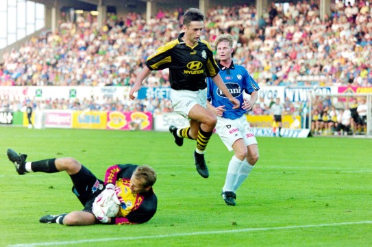 Håkan i action vid matchen mot Parma i oktober 1995 på Gamla Ullevi.