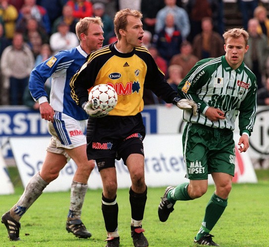 1997 mot AIK på Örjans vall. HBK:aren i bakgrunden är Jesper Mattsson.