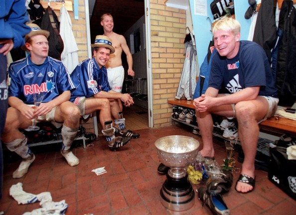 Jubel efter mål mot Elfsborg 1999. Peter Lennartsson (15) visar stor glädje.