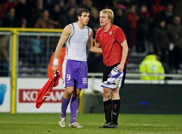 2007 spelade Petter med Rennes och här är det tröjbyte efter matchen mot Toulouse och deras spelare Johan Elmander.