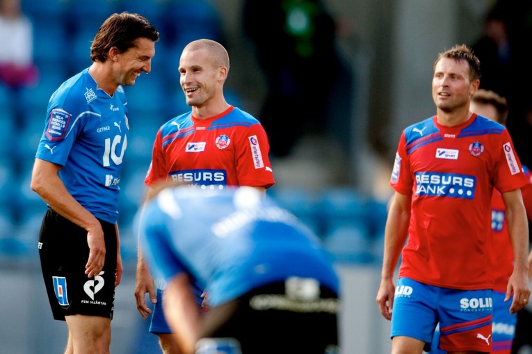 Båda har spelare i både HBK och HIF. Mikael Gustavsson och Christoffer Andersson efter en match 2011.